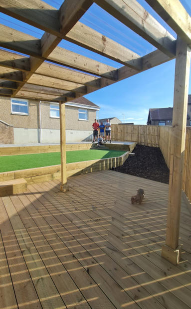 GreenFellas build great decking areas! Composite, timber, single level, multiple levels, sloping, small or large areas - we can handle them all and are your local decking installation specialists. All the decking products and materials we use are the highest quality and guaranteed - as is our workmanship. If you are thinking of installing decking, our expertise, experience and attention to detail when it comes to decking is second-to-none. We have many customers throughout Ayrshire, Glasgow and West Central Scotland who have been absolutely delighted with what we built for them! We would be delighted to discuss your decking requirements with you and we will provide you with the best possible advice on what would best match your requirements and budget. Contact us now to arrange a free visit and a free quite for the best price possible for your new decking.